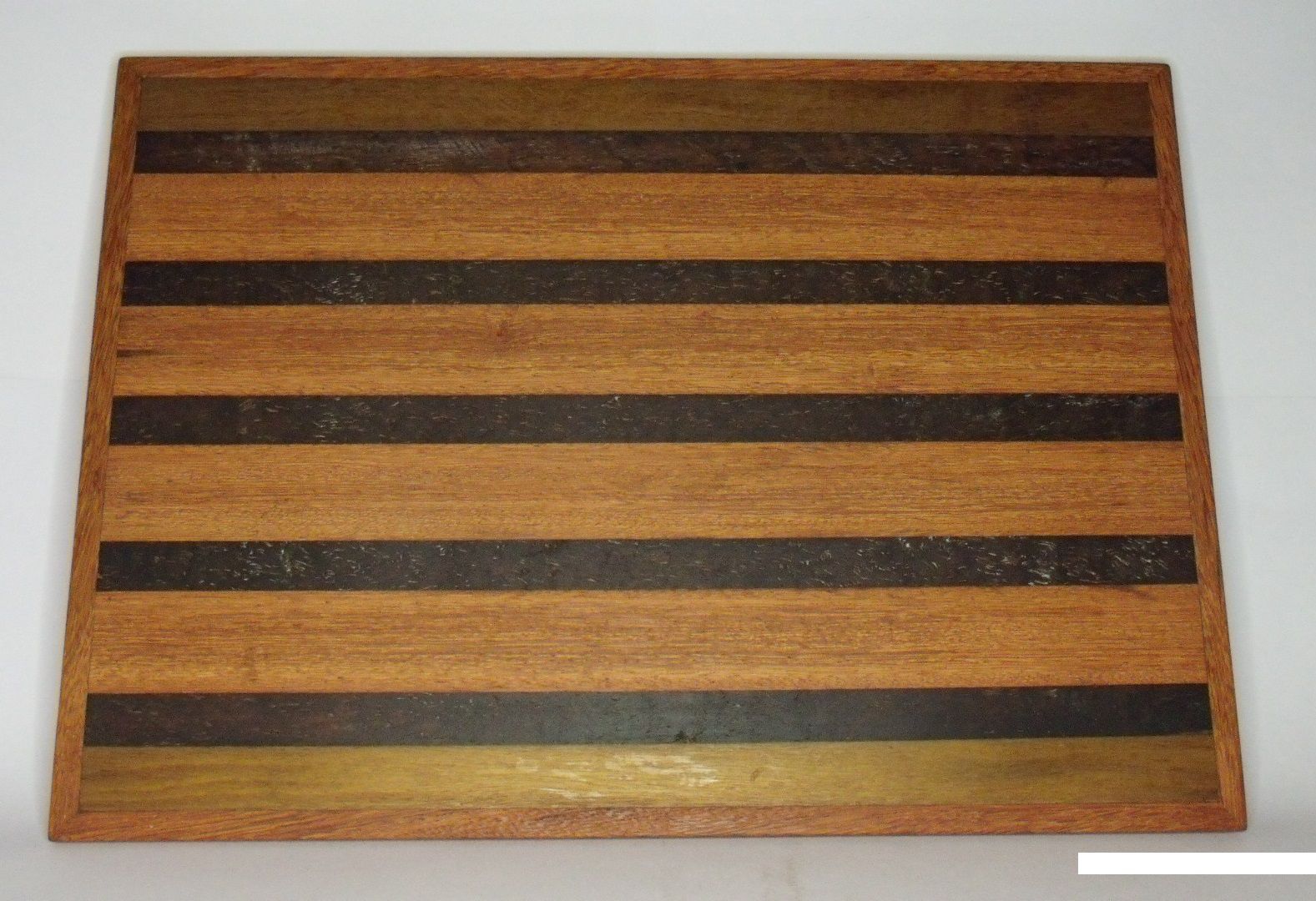 Tábuas de corte ou para frios marchetadas com madeiras maciças e design único.